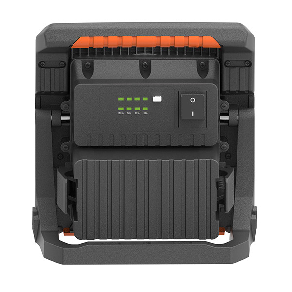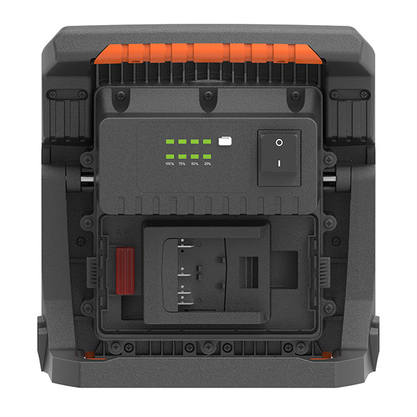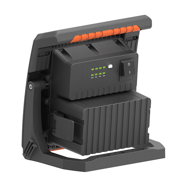 Multiple brightness levels: 100%-75%-50%-25%-off, produces Max. 4000lm when used in dark area, Max. 22hrs use when by ECO level using a 8Ah battery pack
